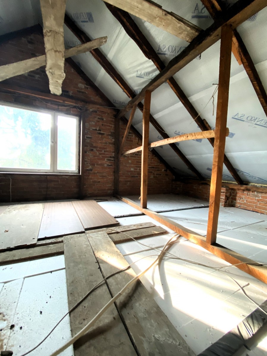Dom z potencjałem rozbudowy o poddasze, które można zaadoptować na cele mieszkaniowe.