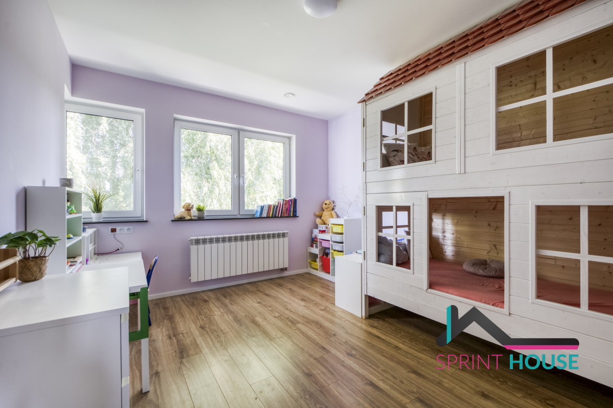 - miejsca do życia, które ma oddzieloną strefę dzienną od sypialnej; trzy łazienki z wc, co pewnie już wiesz, że jest mega niezbędne, jeśli masz choćby dwoje dzieci :),