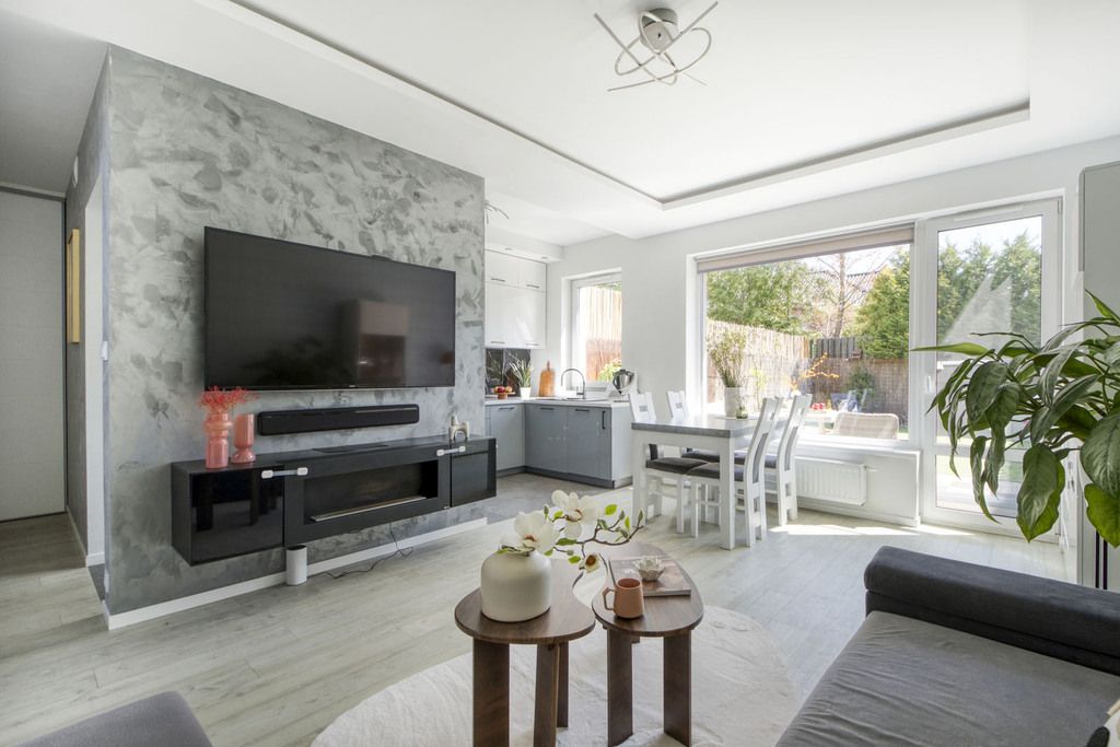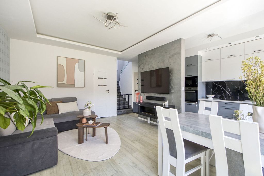 nowoczesny i bezczynszowy dom w zabudowie szeregowej położony w kameralnej części Józefosławia, przy spokojnej ulicy Barwinka, w otoczeniu domów jednorodzinnych i zieleni. Starannie wykończony,