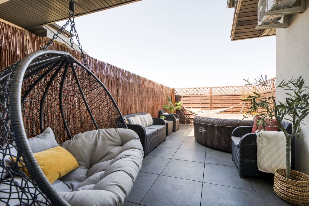 - 58-metrowych ogródek z tarasem i domkiem na narzędzia