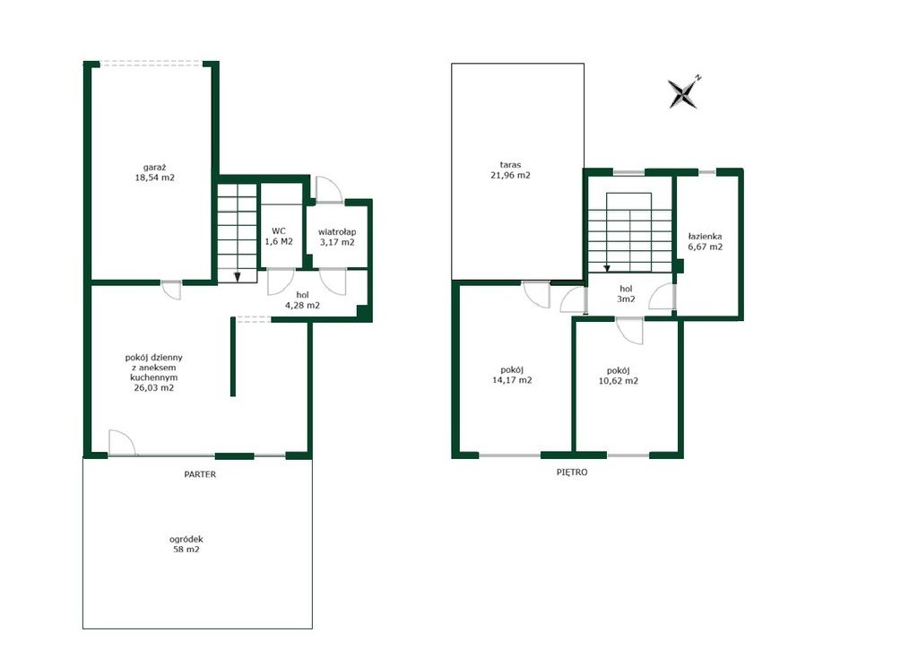- ogródek 58 mkw. oraz taras 21,96 mkw.