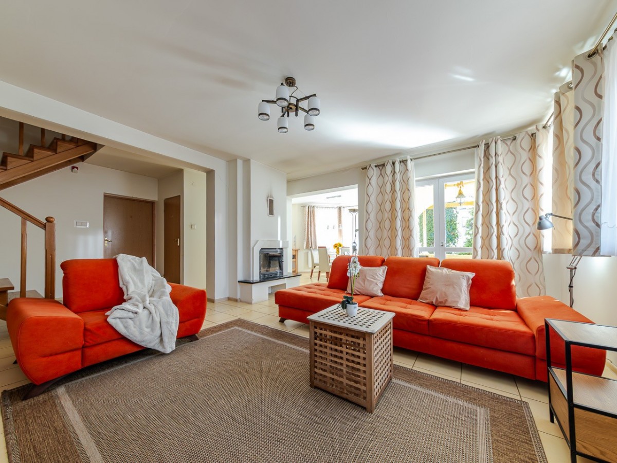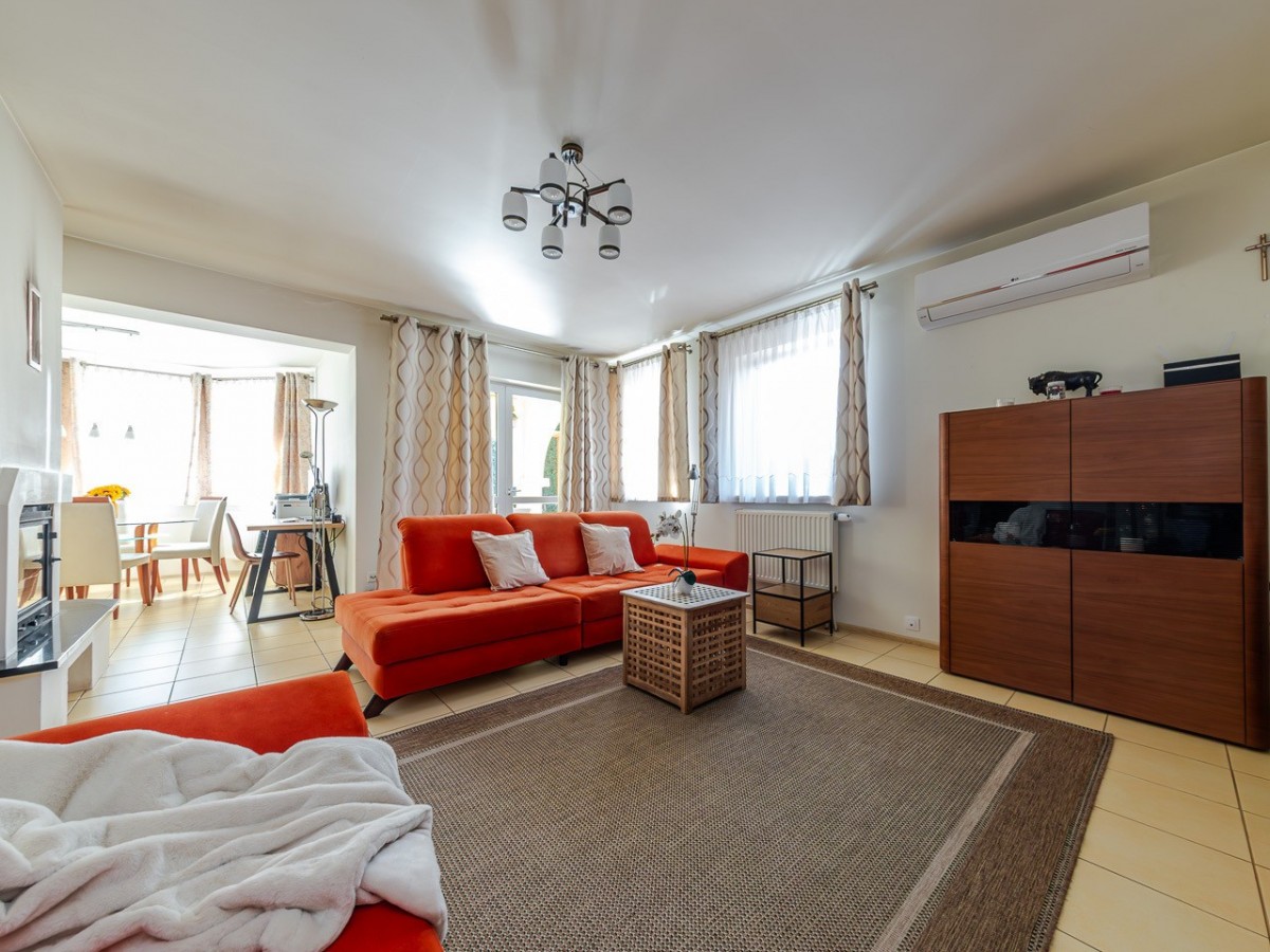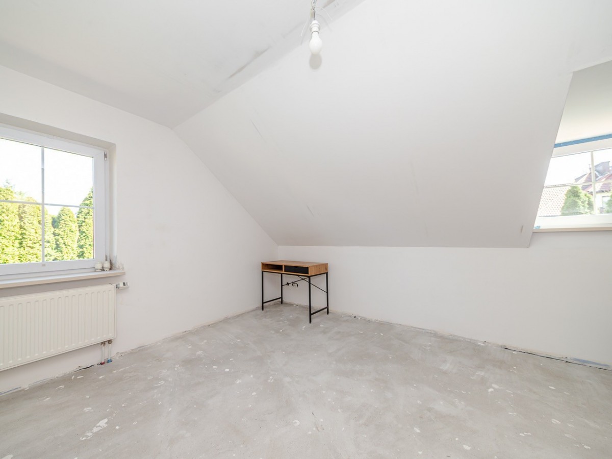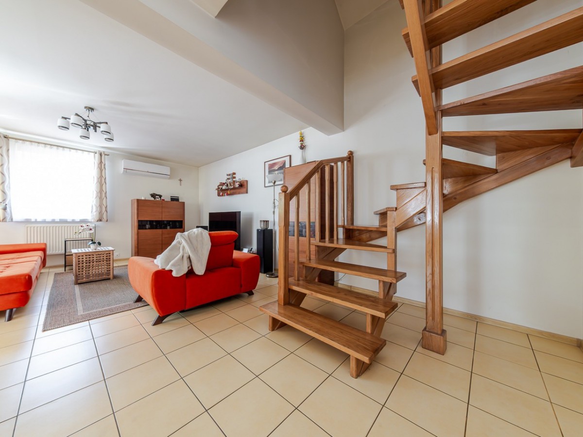 Standard: dom jest w stanie do odświeżenia / ewentualnie remontu, w salonie zainstalowana została klimatyzacja, okna są antywłamaniowe P4, na podłogach na dole jest gres a na górze panele.