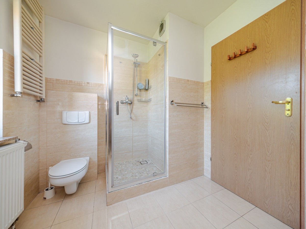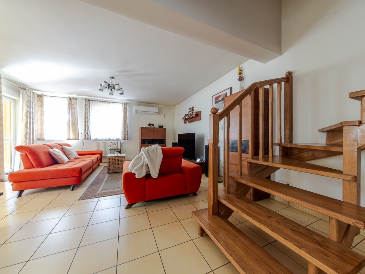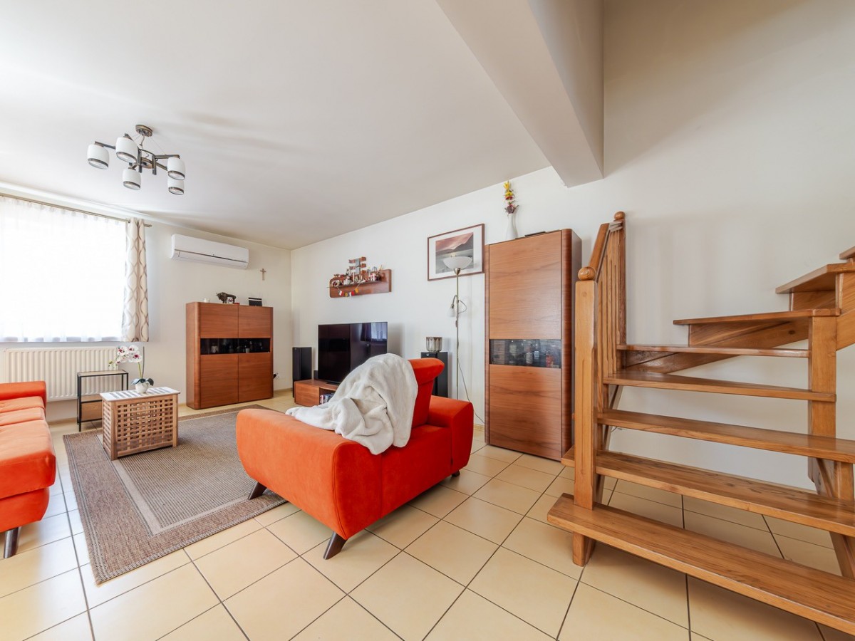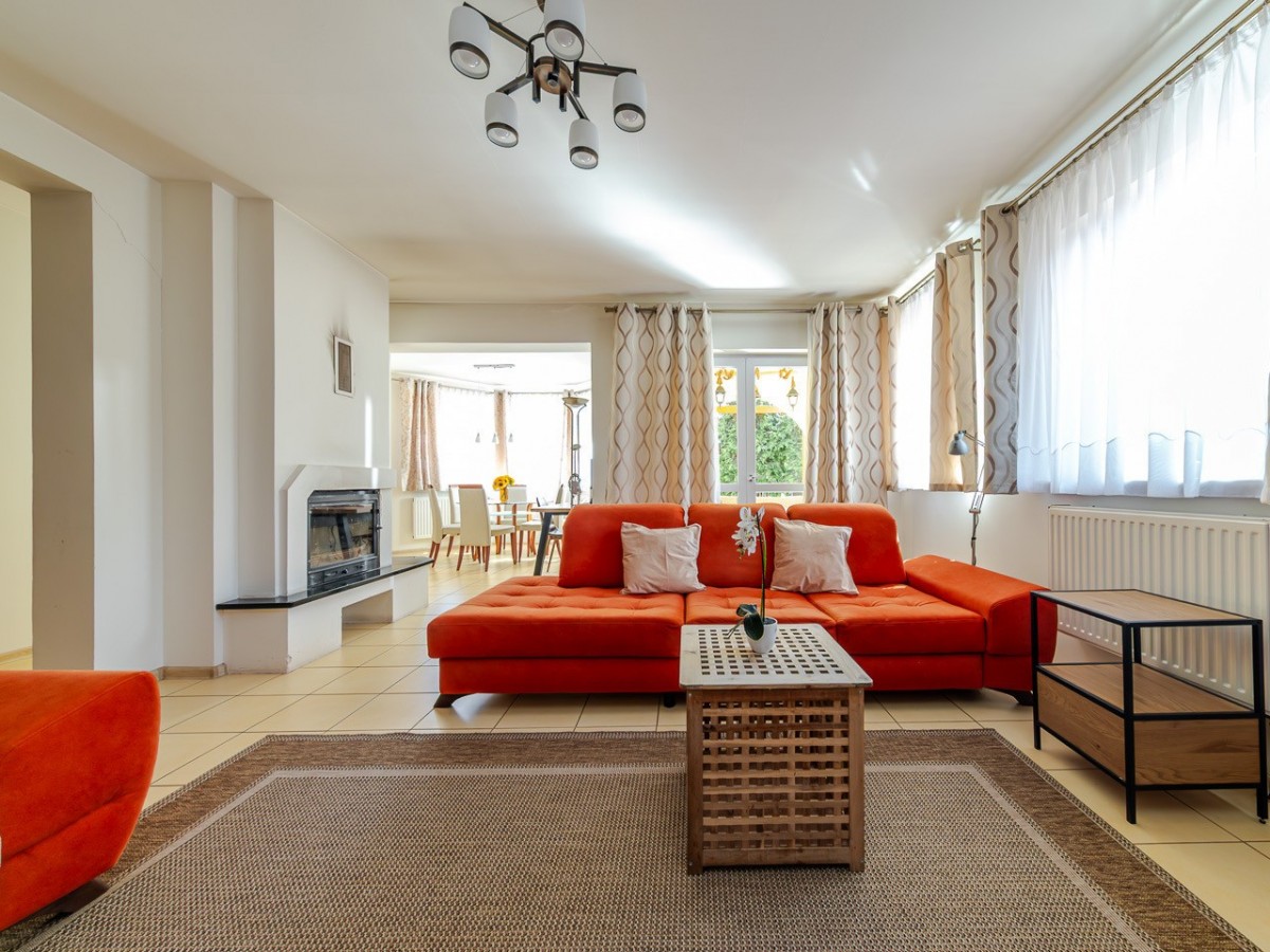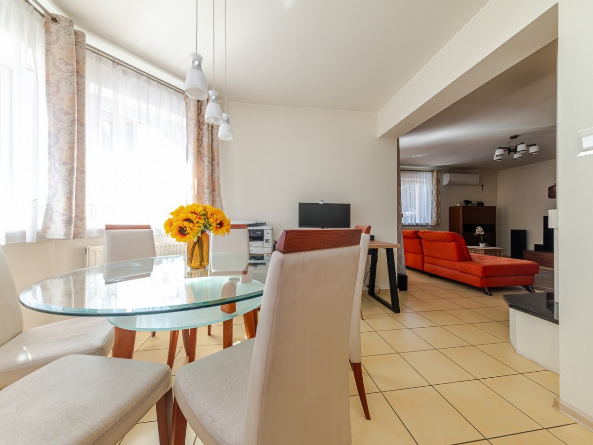 Standard: dom jest w stanie do odświeżenia / ewentualnie remontu, w salonie zainstalowana została klimatyzacja, okna są antywłamaniowe P4, na podłogach na dole jest gres a na górze panele.