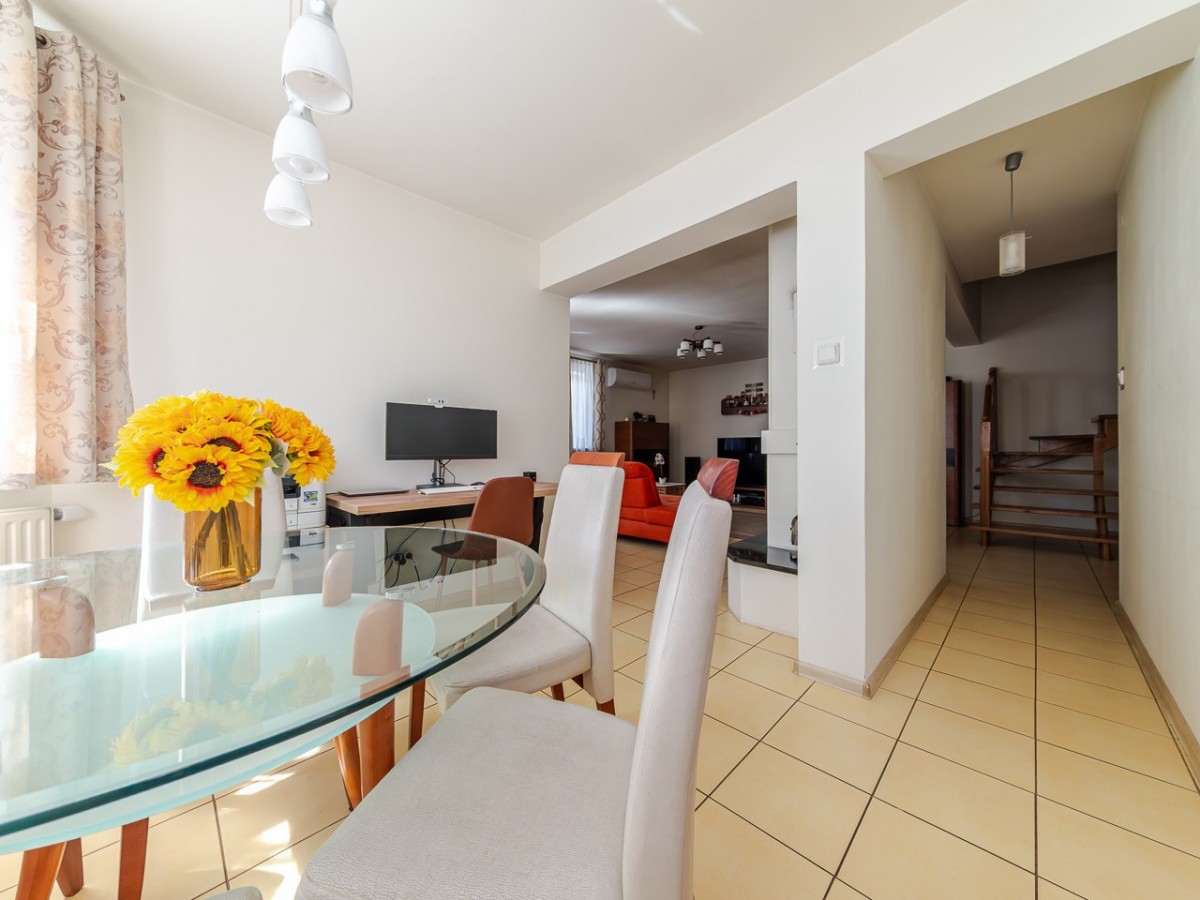 Na sprzedaż przestronny dom w zabudowie bliźniaczej położony przy ul. Twórczej - idealna propozycja dla osób szukających nieruchomości z dużym potencjałem aranżacyjnym, prywatnym ogrodem oraz wygodnym dojazdem do Warszawy.