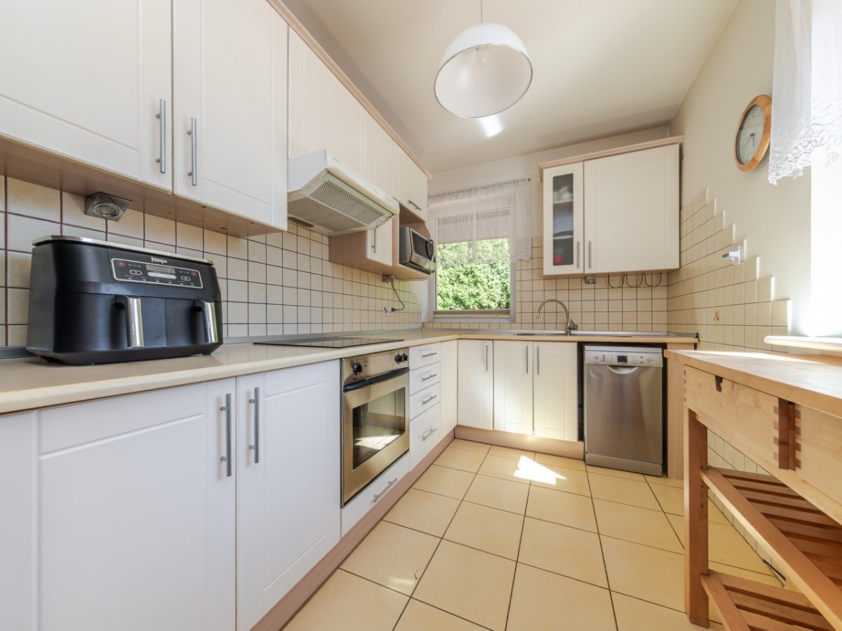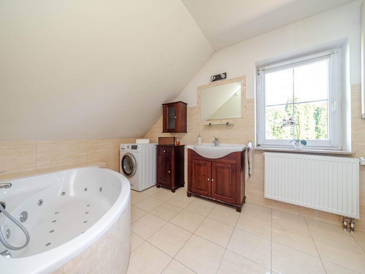 Na posesji bez problemu zaparkuje kilka samochodów - oprócz garażu do dyspozycji jest także szeroki podjazd, co stanowi ogromną wygodę dla domowników i gości.