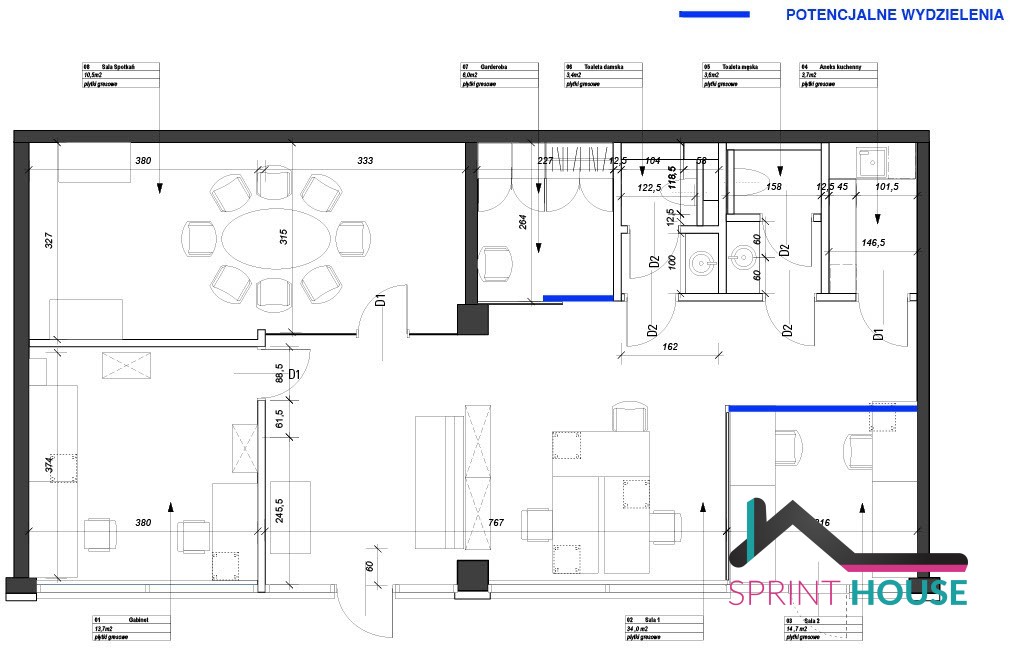 * Open space (możliwość wydzielenia recepcji oraz możliwość podziału)