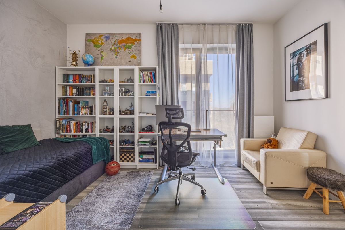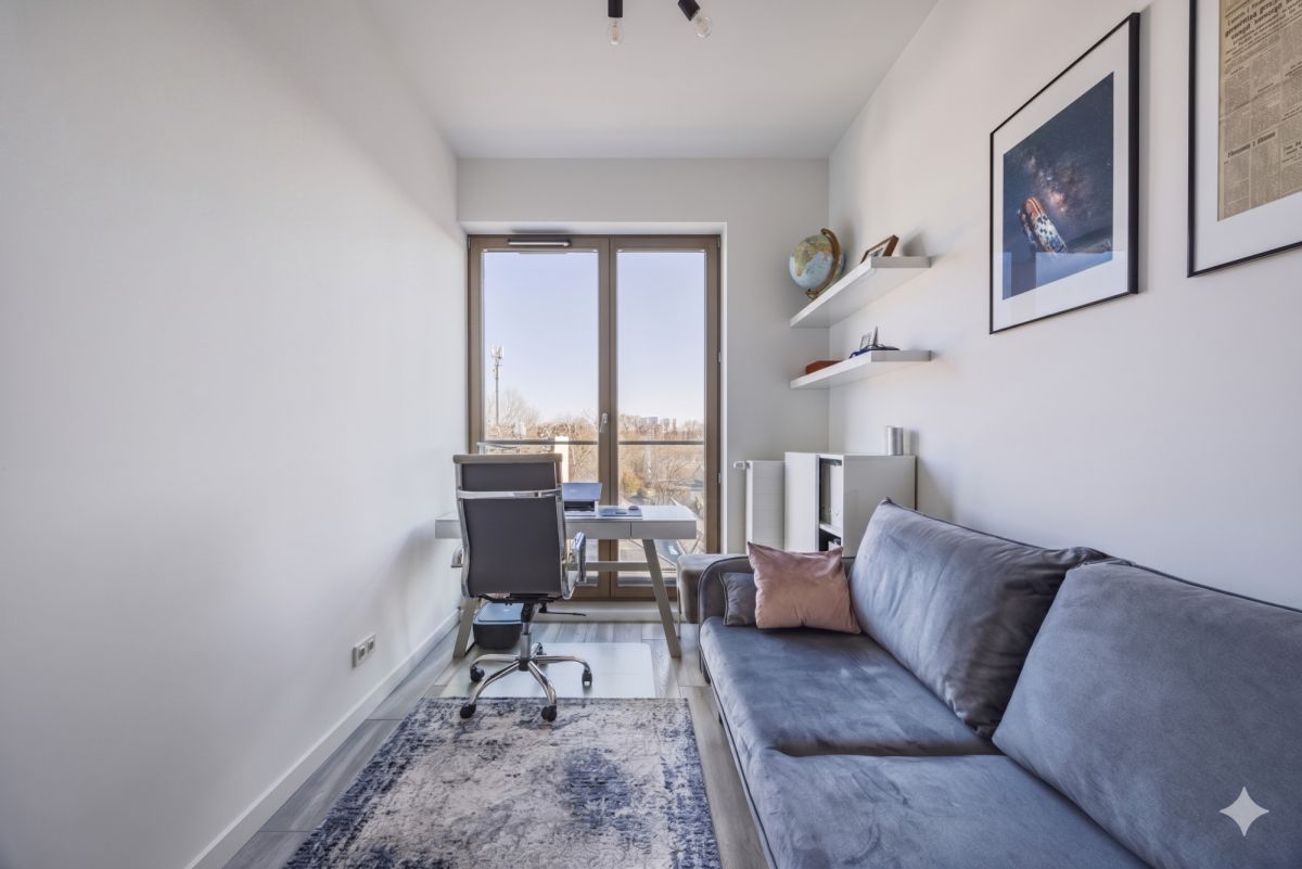 Apartament został zaprojektowany przez architekta tak aby połączyć funkcjonalność oraz wysokiej jakości materiały. Okna wychodzą na 3 strony świata przez co mieszkanie jest bardzo jasne i doświetlone przez cały dzień.