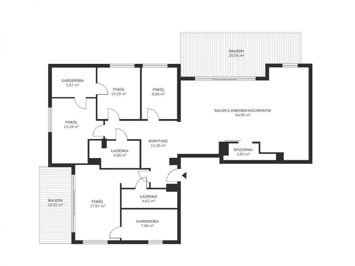 * dwóch, dużych balkonów.