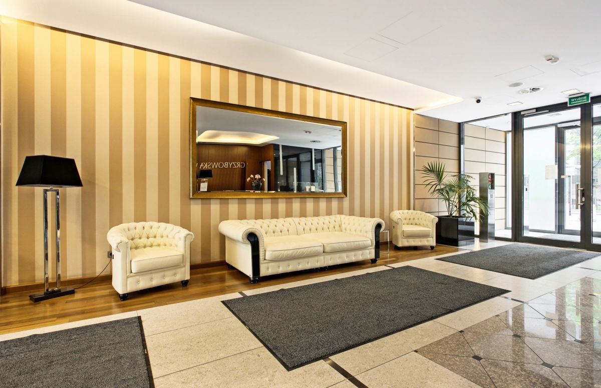 The building at Grzybowska 4 is equipped with an intimate patio with greenery and a fountain intended for the use of residents. The property is located in the vicinity of two parks - Mirowski Park and Saski Garden. The place is well connected with the whole of Warsaw - located just 600 meters from the Świętokrzyska metro, which provides access to both metro lines without changing.