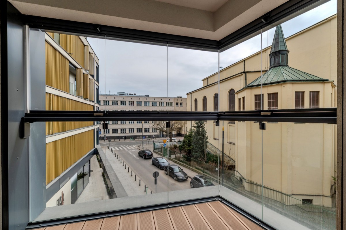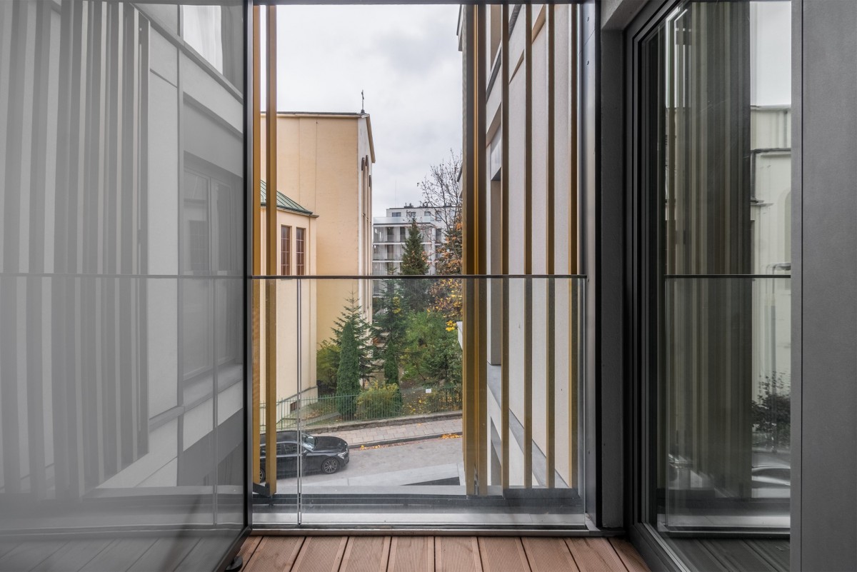 Elegancki apartamentowiec oferuje mieszkańcom liczne udogodnienia, które wpływają na wysoki standard życia: zieloną przestrzeń rekreacyjną z oszklonym tarasem widokowym na dachu budynku, całodobową recepcję, monitoring, luksusowo wykończone korytarze, miejsca postojowe dla rowerów oraz podziemny garaż. Parter inwestycji przeznaczony jest na działalność kawiarni i butików.