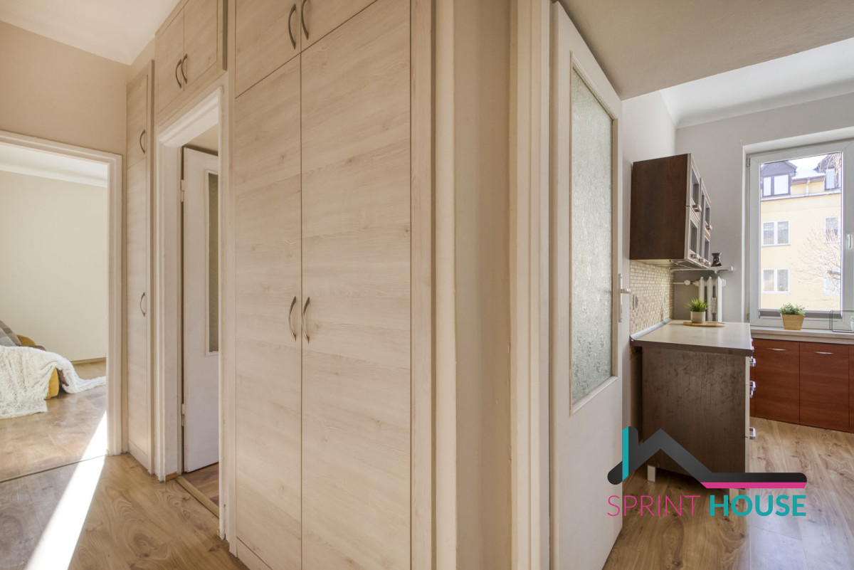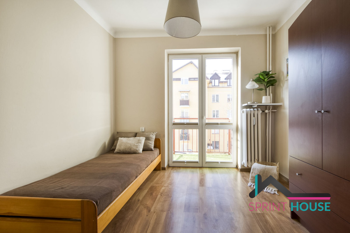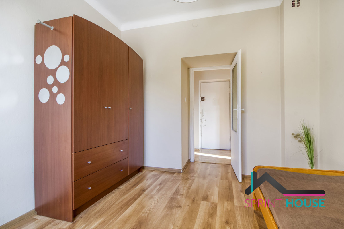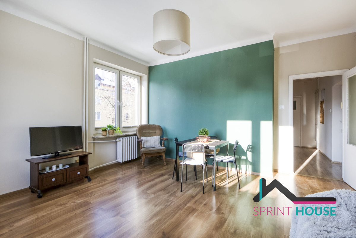 Rozkładowa powierzchnia prawie 45 mkw, na której znajduje się duży pokój, sypialnia z balkonem, oddzielna, widna kuchnia i łazienka z WC oraz przedpokój z dużą szafą. Ekspozycja okien na południe i zachód sprawie, że mieszkanie jest bardzo widne, nawet w porze jesienno-zimowej. Położone na drugim piętrze w czteropiętrowym budynku bez windy.