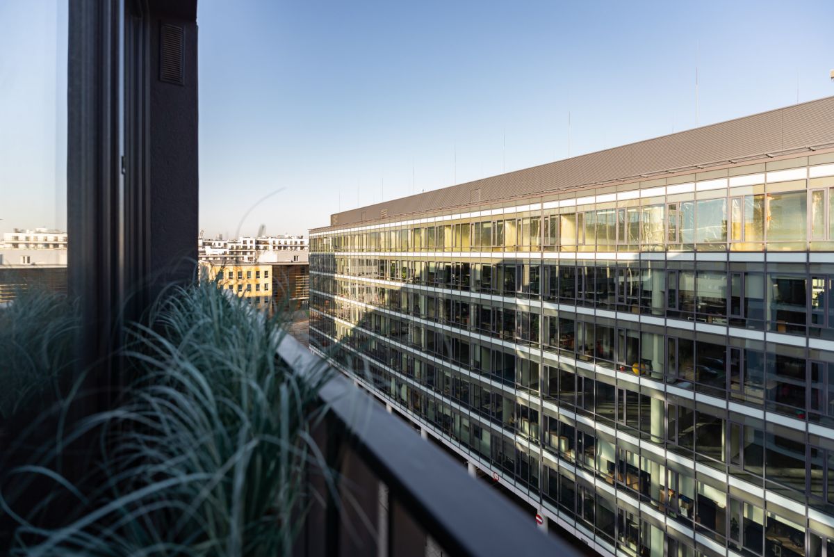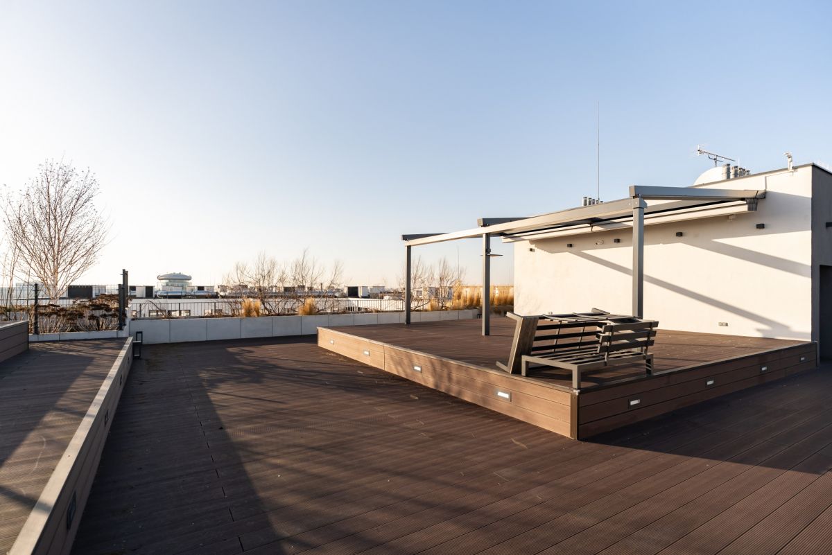 - zielony taras na dachu - doskonałe miejsce do odpoczynku lub organizacji spotkań towarzyskich z widokiem na centrum Warszawy