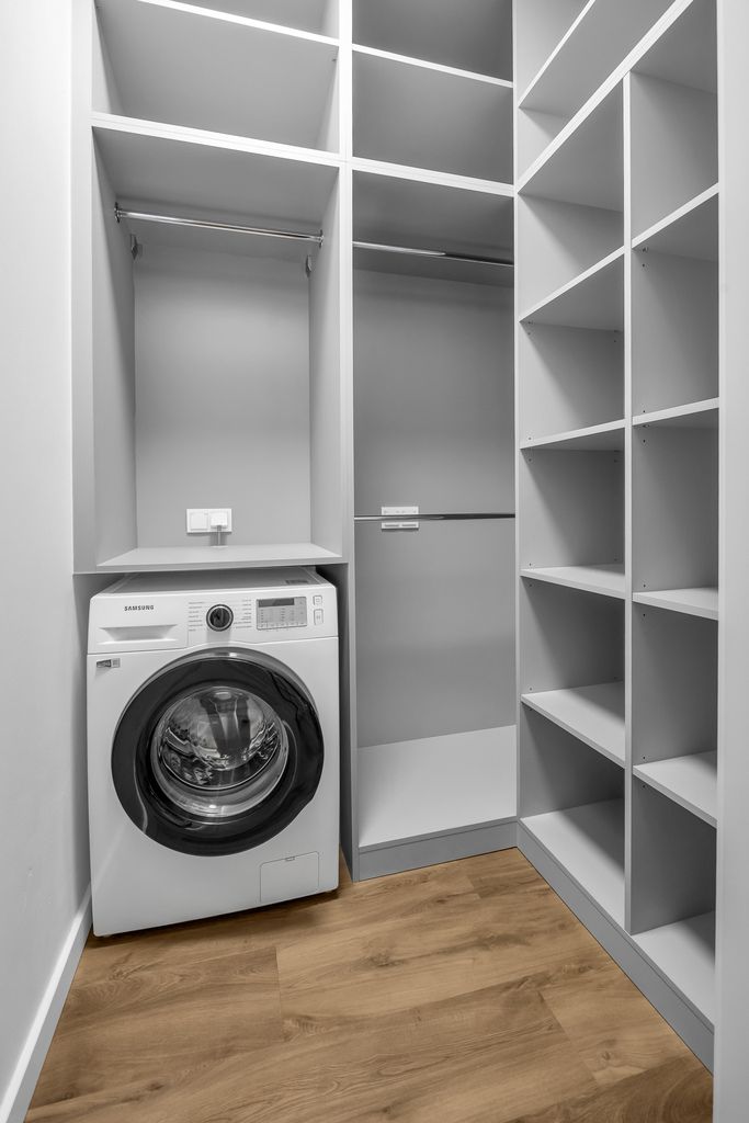 - korytarza, z szafą w zabudowie oferującą sporo miejsca do przechowywania.