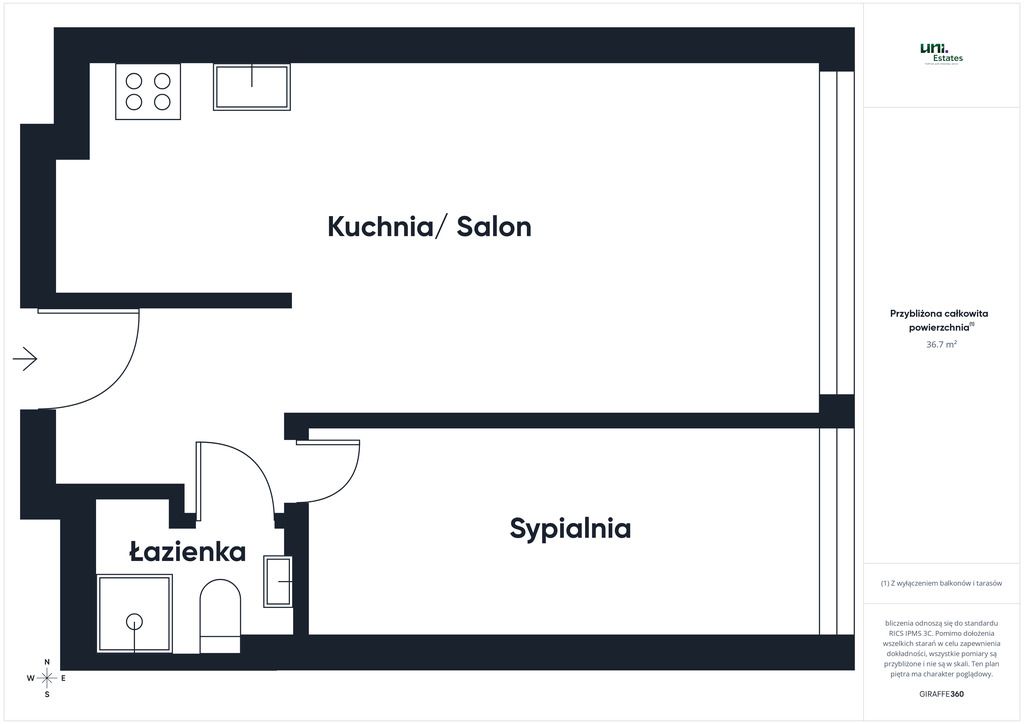 • powierzchnia: 36,7 m²