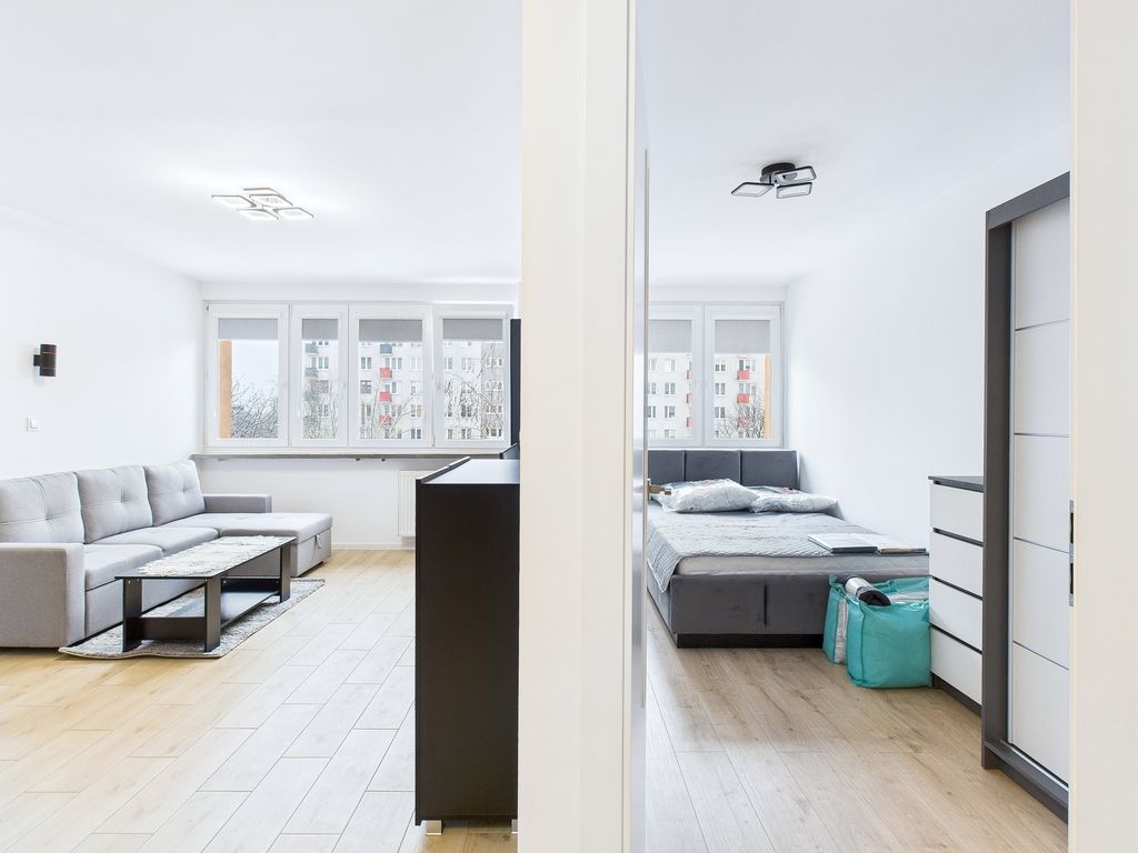 Do wynajęcia świeżo po generalnym remoncie, komfortowe, w pełni wyposażone 2-pokojowe mieszkanie o powierzchni 36,7 m², położone na 5. piętrze budynku z windą przy ul. Zygmunta Modzelewskiego 96 na Mokotowie.