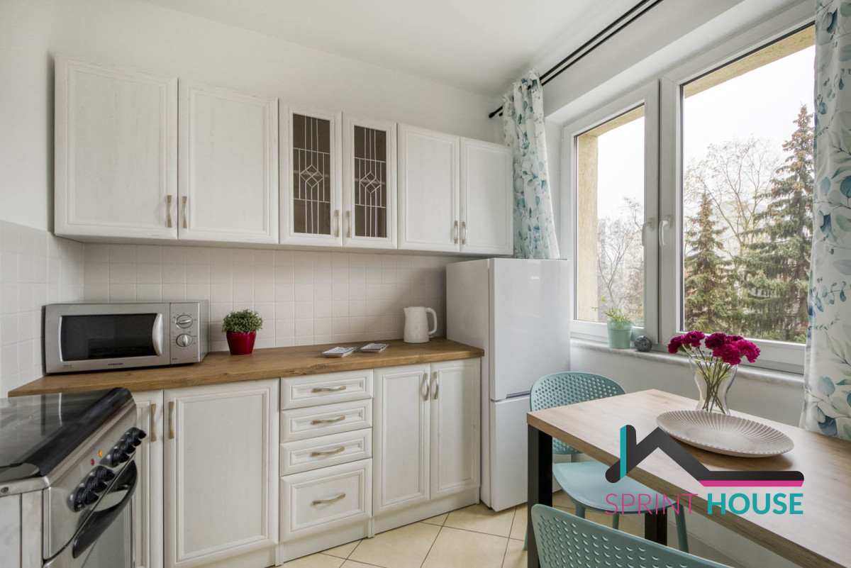 Największym atutem mieszkania pozostaje jego usytuowanie względem komunikacji miejskiej oraz głównych punktów usługowo-handlowych: do centrum biurowego przy ulicy Domaniewskiej mamy kilka minut drogi pieszo lub linie autobusowe, czy tramwajowe ul. Wołoskiej. Do najbliższej stacji metra Wilanowska zaledwie 300 metrów. Niewątpliwą zaletą jest możliwość PARKOWANIA na terenie spółdzielni mieszkaniowej (parking dla mieszkańców, wjazd przez szlaban). Po pełnym wrażeń dniu w pracy możemy przejechać się ścieżką rowerową wzdłuż ul. Wołoskiej lub dojechać do pobliskiego parku w Królikarni. Rozrywki dostarczy także położona zaledwie kilometr od mieszkania Galeria Mokotów.