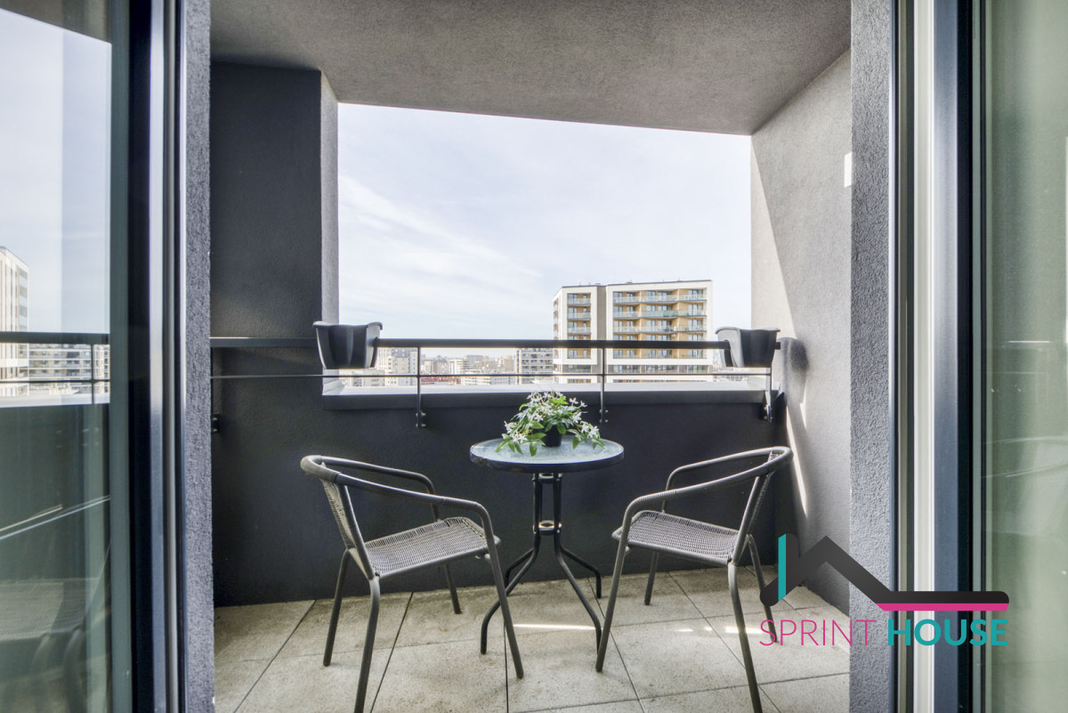 Proponowane mieszkanie znajduje się na cichym i zielonym osiedlu. Inwestycja składa się z 15-piętrowego budynku z wewnętrznym patio. Mieszkanie znajduje się na DWUNASTYM PIĘTRZE z windą. Składa się z salonu, sypialni, aneksu kuchennego oraz łazienki i przedpokoju. Z salonu wyjście na balkon z widokiem na centrum Warszawy. Kuchnia jest w pełni wyposażona we wszystkie potrzebne sprzęty AGD: zmywarkę, lodówkę z zamrażarką, piekarnik, płytę indukcyjną i okap. Funkcjonalna łazienka posiada oprócz standardowego wyposażenia dodatkowo pralkę. NAJEMCA MA MOŻLIWOŚĆ SKORZYSTANIA Z OFEROWANEGO PRZEZ WYNAJMUJĄCEGO PEŁNEGO WYPOSAŻENIA.