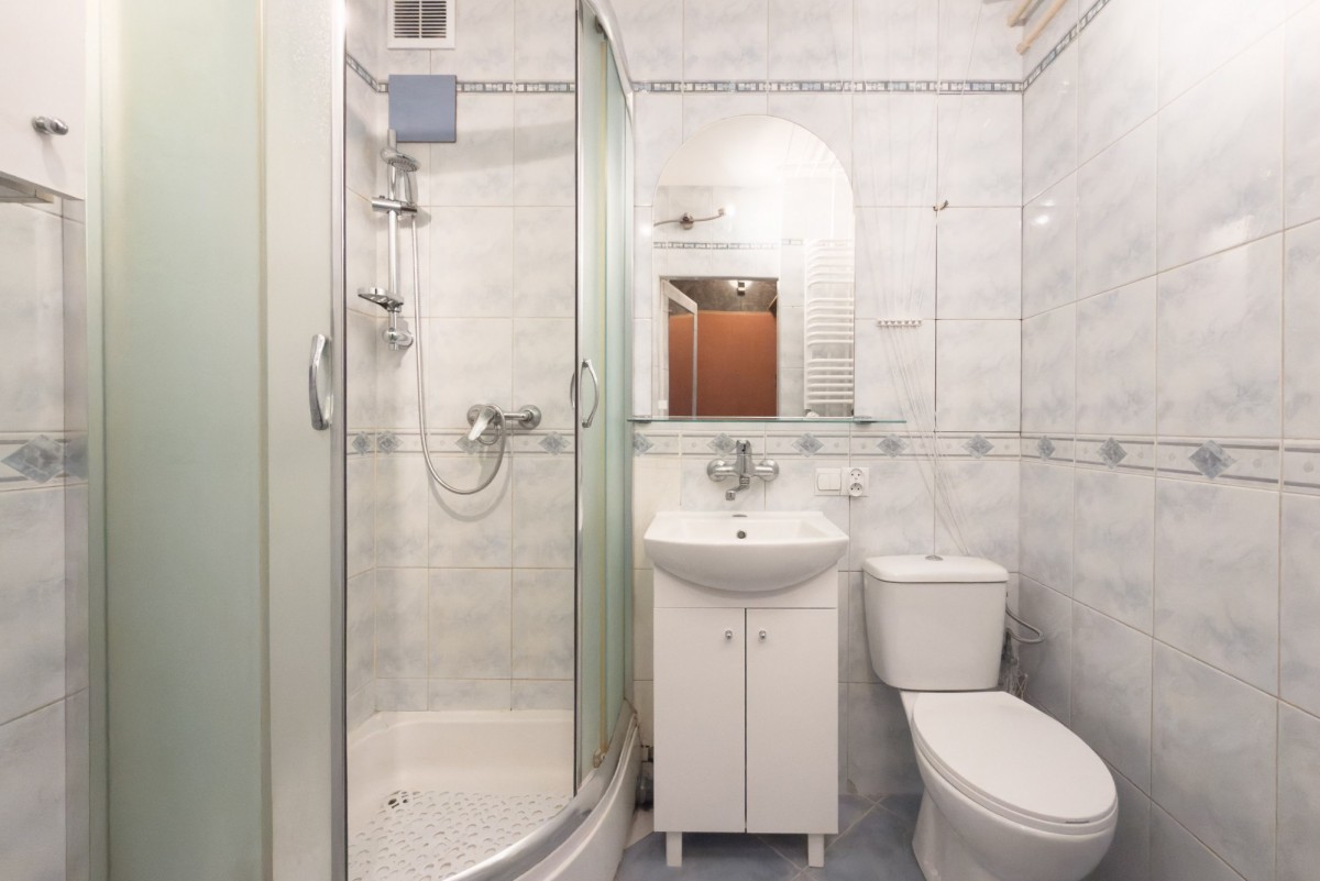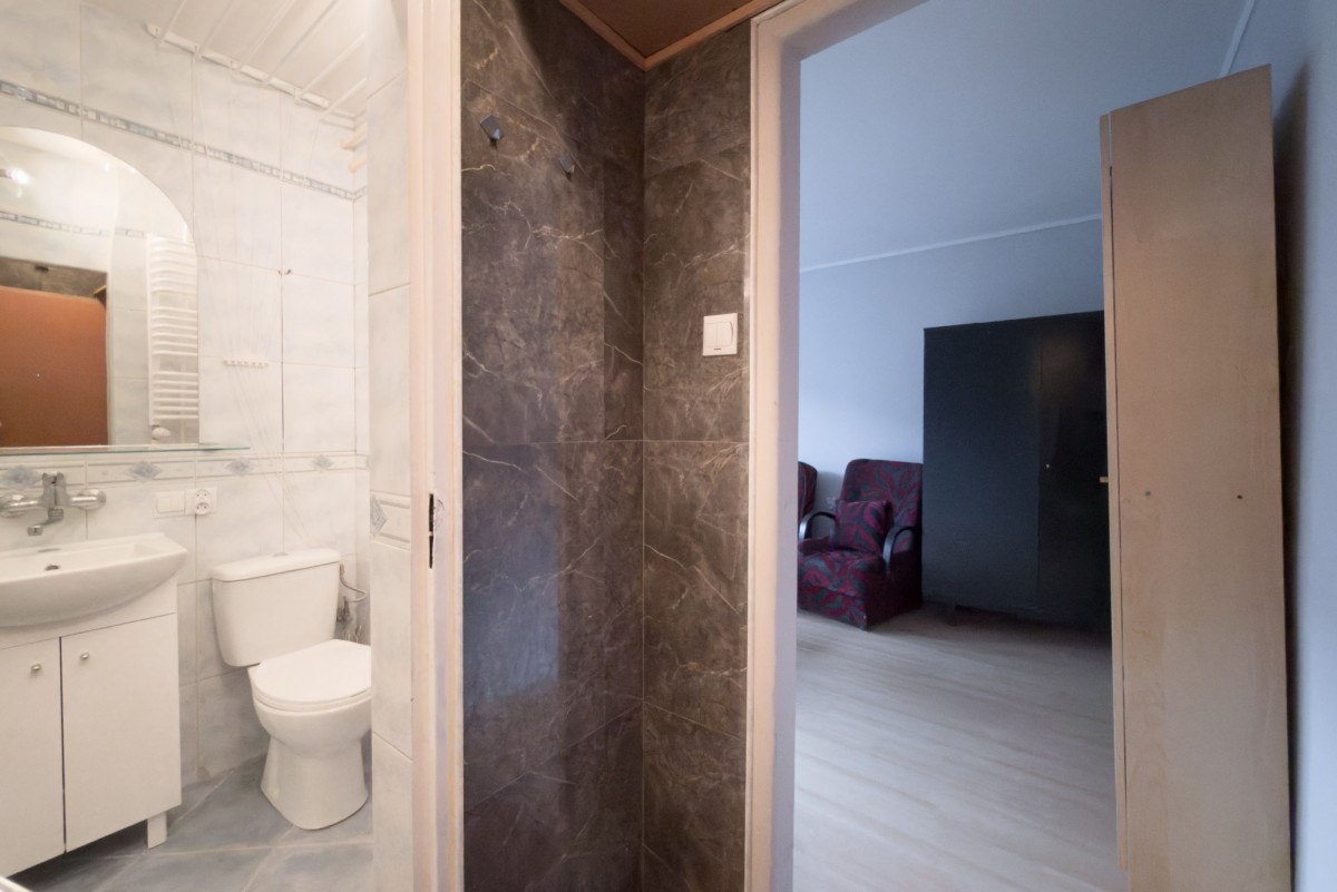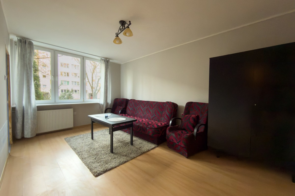 Lokal składa się z pokoju dziennego wyposażonego m.in. w wygodną, rozkładaną kanapę, oddzielnej kuchni z oknem, przestronnej łazienki z kabiną prysznicową i WC oraz niewielkiego przedpokoju z pojemną szafą wnękową.