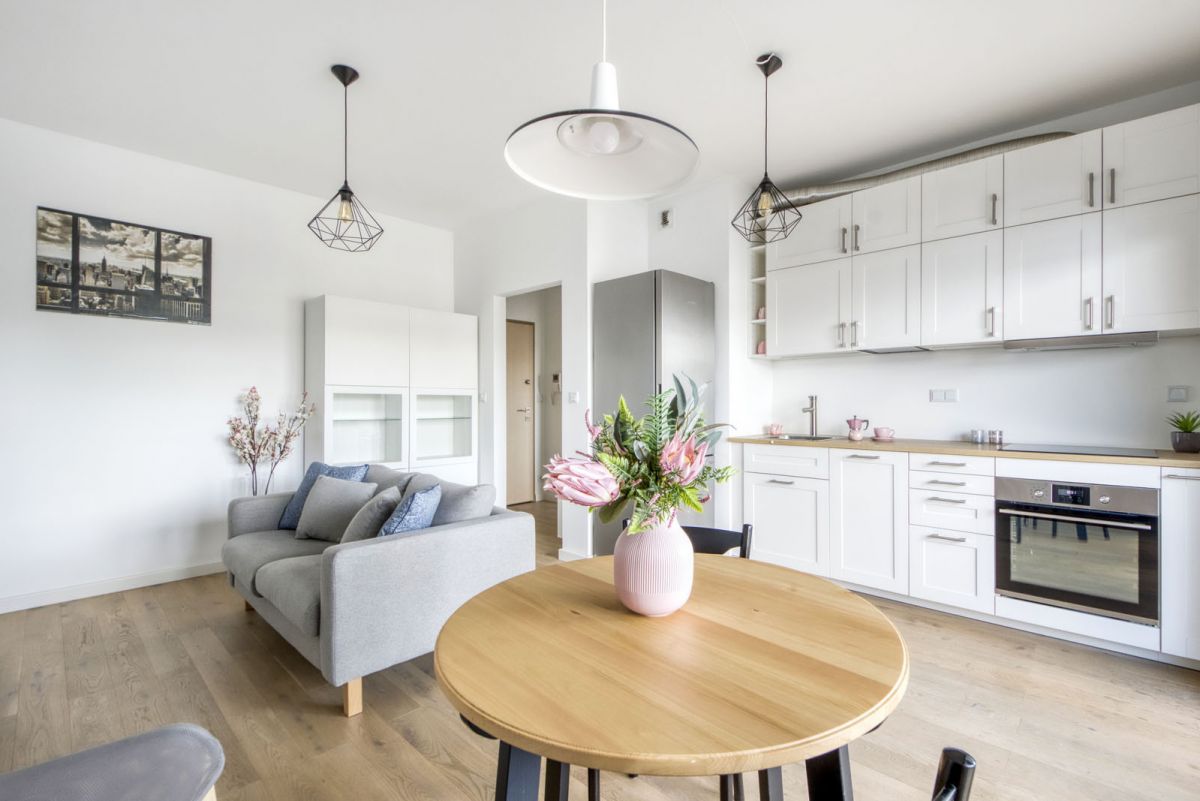Przede wszystkim LOKALIZACJA. Mieszkanie położone jest w prężnie rozwijającej się części Żoliborza, 10 minut wystarczy żeby dojechać do ścisłego centrum Warszawy i tyle samo do centrum biznesowego Woli, czyli budynków takich jak np. Warsaw Spire. W najbliższym sąsiedztwie mieszkania znajdziemy pełną infrastrukturę: sklepy, w tym markety, restauracje, kawiarnie są w zasięgu kilku minut spacerem. Ekspozycja okien na wschód sprawia, że w mieszkaniu nie zabraknie słońca nawet zimą, jest widne. Okna nie wychodzą na bezpośrednio na ulicę, dzięki czemu w tym mieszkaniu odpoczniesz lub spokojnie popracujesz z domu. Na wyposażeniu znajdziemy wszystkie potrzebne sprzęty i meble. Nie musisz nawet kupować garnków i sztućców, jedyne, czego potrzebujesz, to walizka z ubraniami!