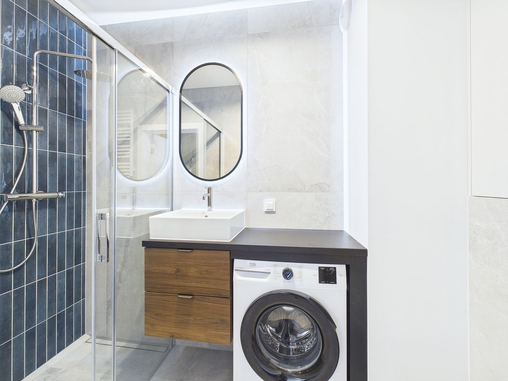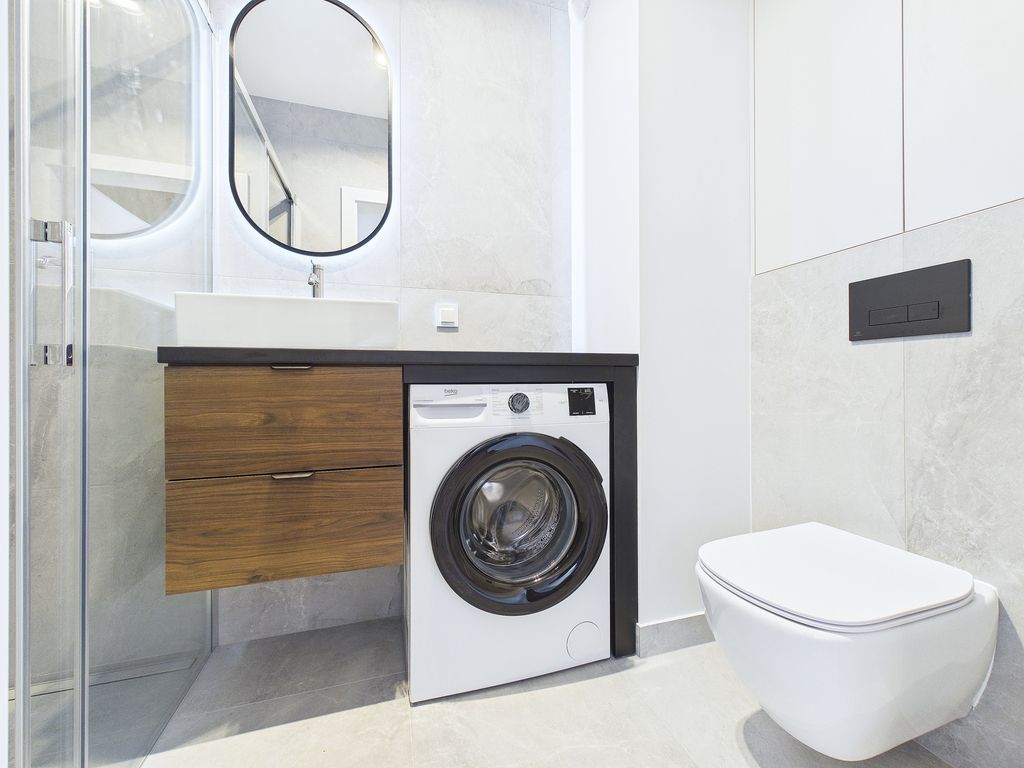 - BATHROOM: Modern, with a new washing machine and high-class fittings.