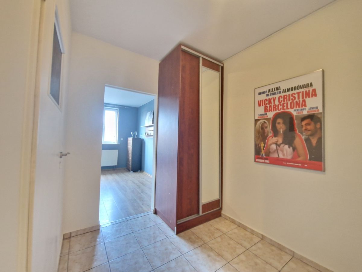 Do lokalu wchodzi się z małego korytarzu, z którego jest jeszcze wejście do sąsiedniego mieszkania.